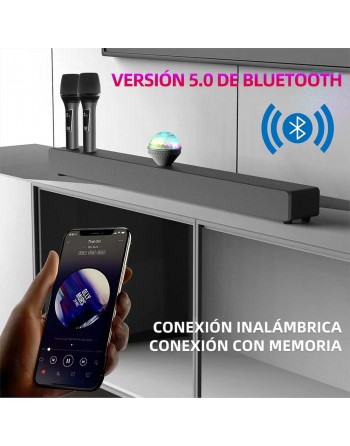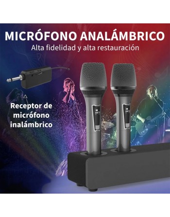 ¡Incluye micrófonos inalámbricos para echarte un karaoke!