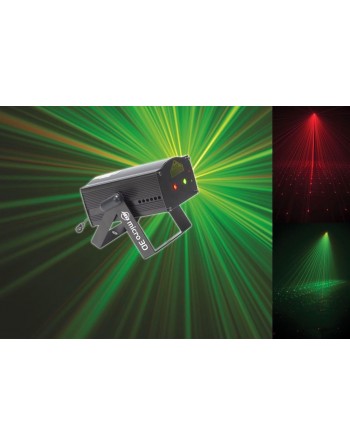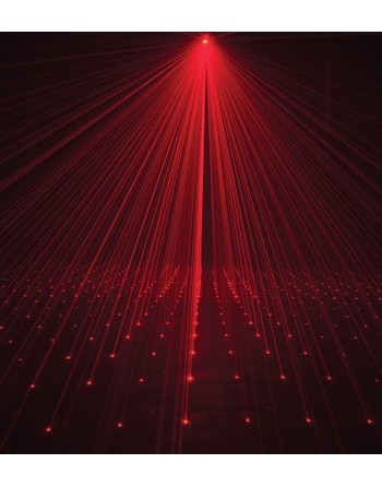 Produce más 200 rayos en color verde y rojo que giran de izquierda a derecha creando un efecto espectacular que también puede ser proyectado en el techo, pared o en una pista de baile.
