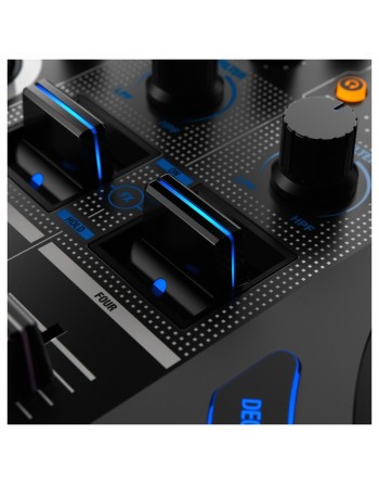 Controlador de DJ híbrido de cuatro canales para aplicaciones digitales y de DVS