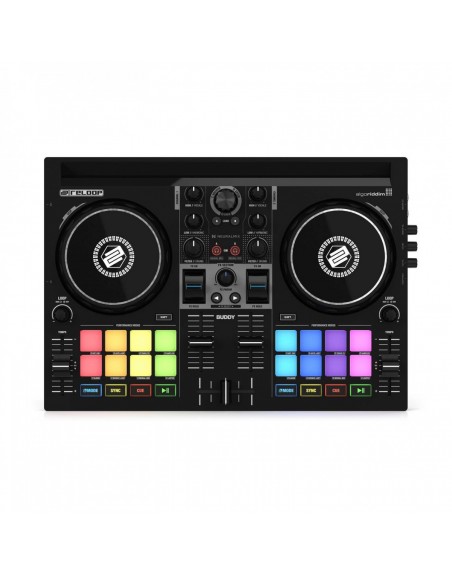 El Reloop Buddy está diseñado con la aplicación Djay en mente, proporcionando una profunda integración. La aplicación Djay de Algoriddim te permite mezclar cualquier canción de tu servicio de streaming favorito - live! Esto significa que siempre puedes tomar una petición o incorporar esa canción que siempre olvidaste. Literalmente tienes millones de canciones a tu alcance, así que no necesitas tener constantemente tu disco duro o unidad USB con tus discos favoritos. Esta también es una gran característica para los principiantes que no tienen listas creadas, permitiéndote aprender el art de DJing con tus propias listas de reproducción personales.