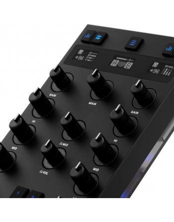 Dedica menos tiempo a mirar tu portátil gracias a las pantallas OLED, que muestran información esencial sobre la mezcla, parámetros de ecualización y stems, selección de Mixer FX y nivel de salida maestra.