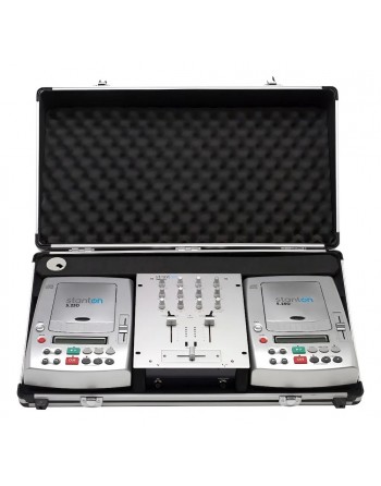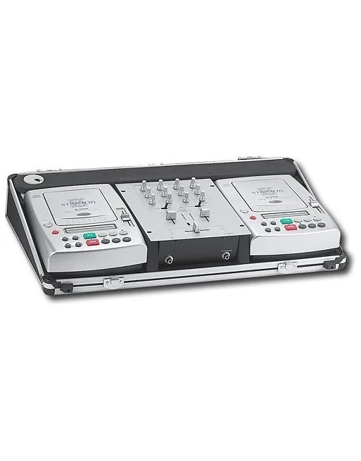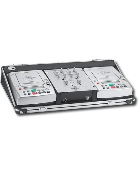 Este paquete incluye dos reproductores de mesa de CD y una mezcladora en un gran estuche rígido, lo que hace más sencillo llevar la fiesta a cualquier lugar.