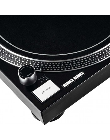 El motor accionado por correa desacopla la unidad de transmisión del plato y el chasis diseñados con precisión, mientras que la correa de goma elástica de alta calidad absorbe y reduce las vibraciones no deseadas, lo que resulta en una reproducción sin distorsiones. La construcción robusta y reforzada y un plato de aluminio fundido a presión permiten que el rp-1000 mk2 resista los rigores del desgaste en la carretera. Las velocidades de 33-1 / 3 y 45 rpm se pueden seleccionar manualmente a través de botones dedicados en el panel superior, y un fader de precisión permite un fácil control de tono hasta +/- 10%.