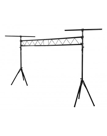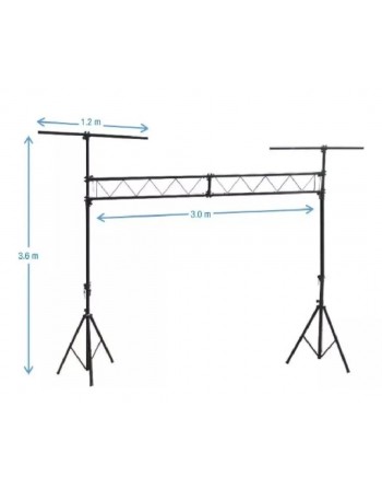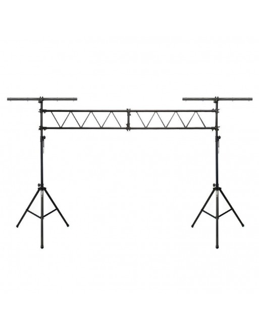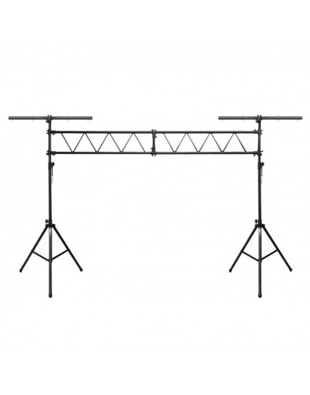 Estructura para equipo de iluminación estructura metálica elaborada de acero al carbón, capacidad de carga 120 kilogramos, tripies de 3 puntos de apoyo, sistema de altura ajustable, larguero ranurado de fácil montaje.